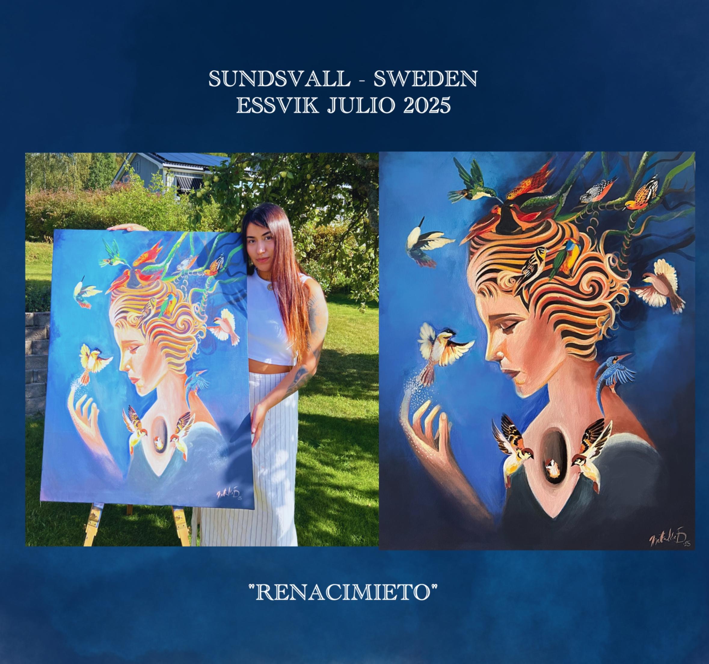 Pintar en Suecia fue una experiencia de profunda conexión interior. En medio del verano nórdico, rodeada por la calma del bosque y la brisa del mar de Essvik, sentí que la naturaleza me hablaba en silencio. Cada amanecer era una invitación a plasmar la serenidad, la introspección y la belleza invisible que habita en lo simple. Mi obra, nacida en esos días de luz infinita, representa el diálogo entre el alma y las aves del pensamiento: la libertad, la expansión y la armonía interior. En Suecia comprendí que el arte también puede ser un lenguaje de quietud, una forma de meditación en movimiento, donde cada color respira la esencia del norte y cada trazo es un suspiro del espíritu.