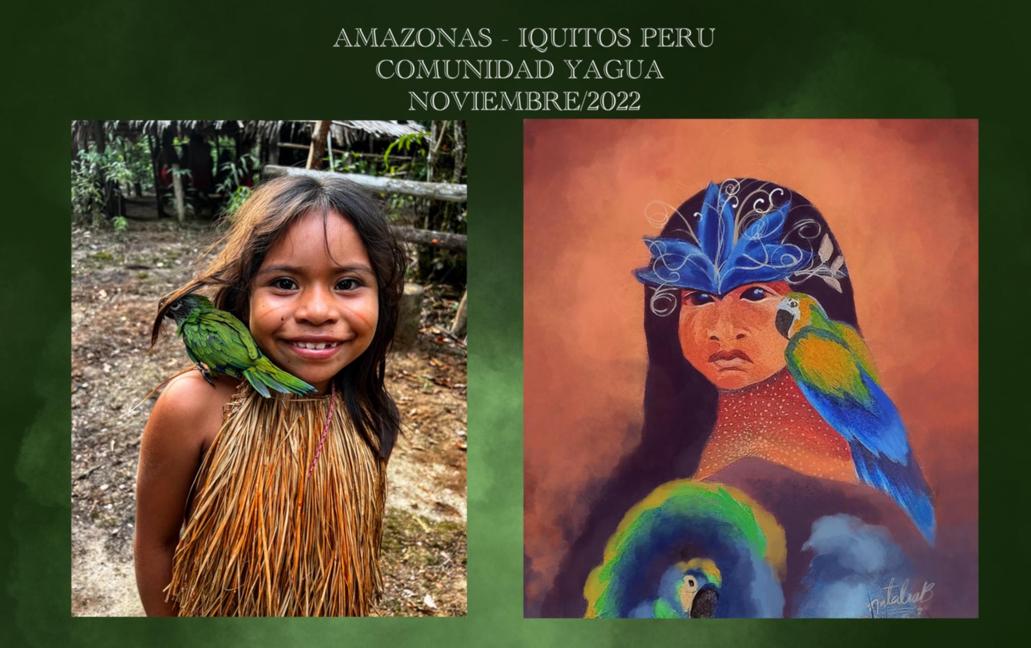 Esta obra nació en el corazón del Amazonas, inspirada por la pureza y la fuerza de la niñez indígena. Pinté a una niña Yagua que conocí entre la selva y los cantos de los guacamayos, símbolo de conexión y sabiduría ancestral. En su mirada descubrí la esencia del bosque: inocencia, poder y espíritu libre. Esta pintura es un tributo a la vida que florece en armonía con la tierra.